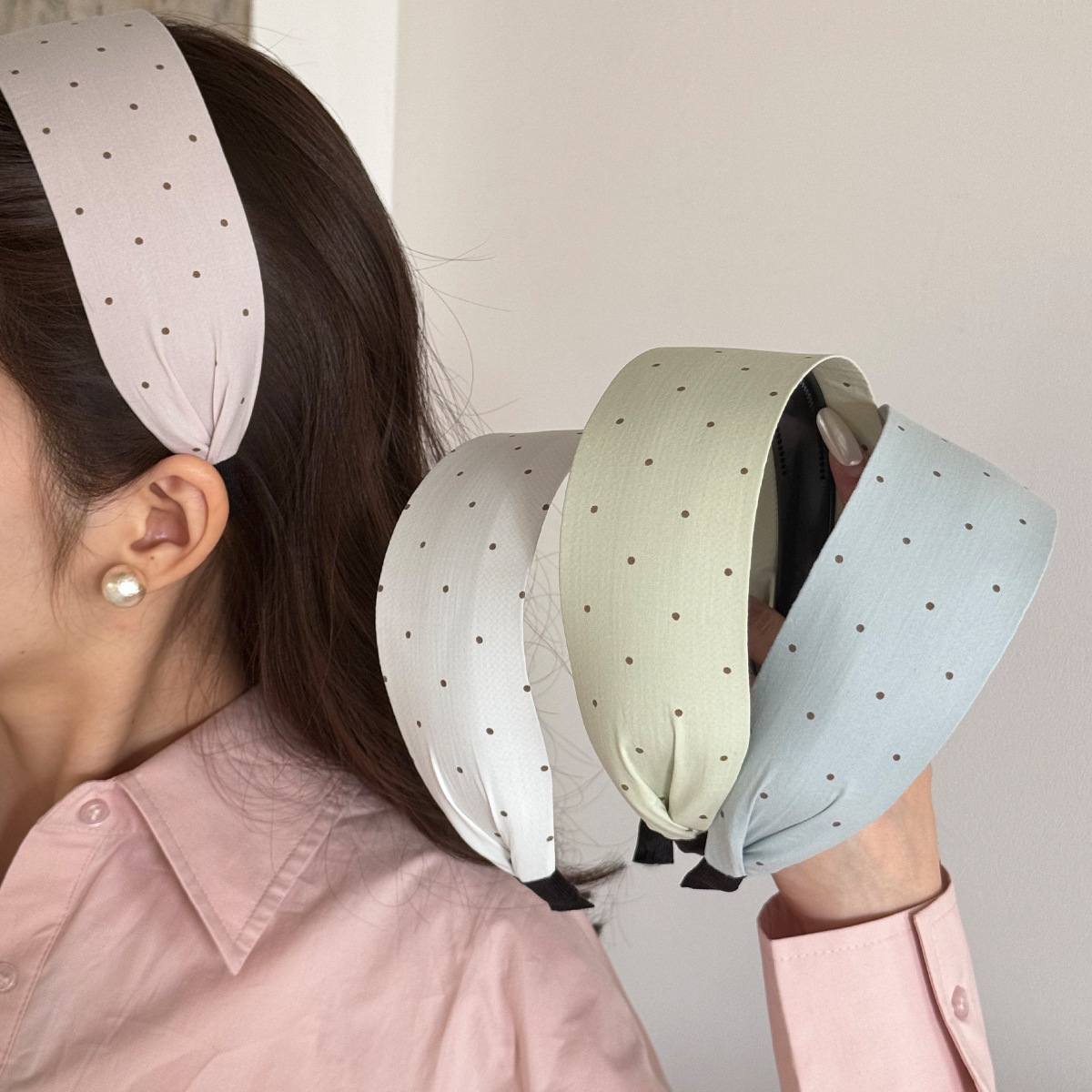时尚气质宽边发箍彩色布艺咖色波点扁平宽发箍显瘦百搭压发头箍女