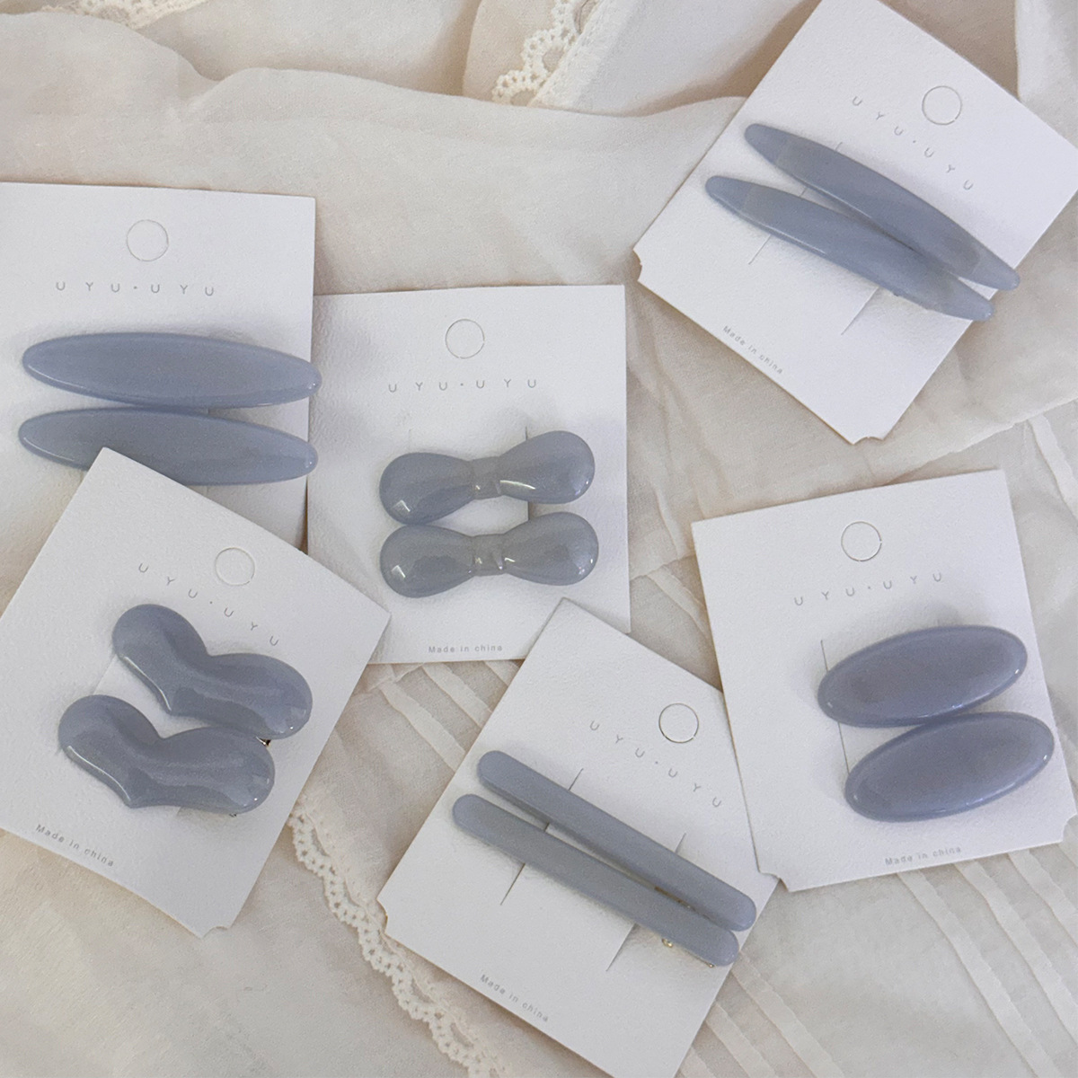 韩版朦胧灰蓝复古对夹甜美可爱质感爱心造型2025年鸭嘴夹刘海夹子