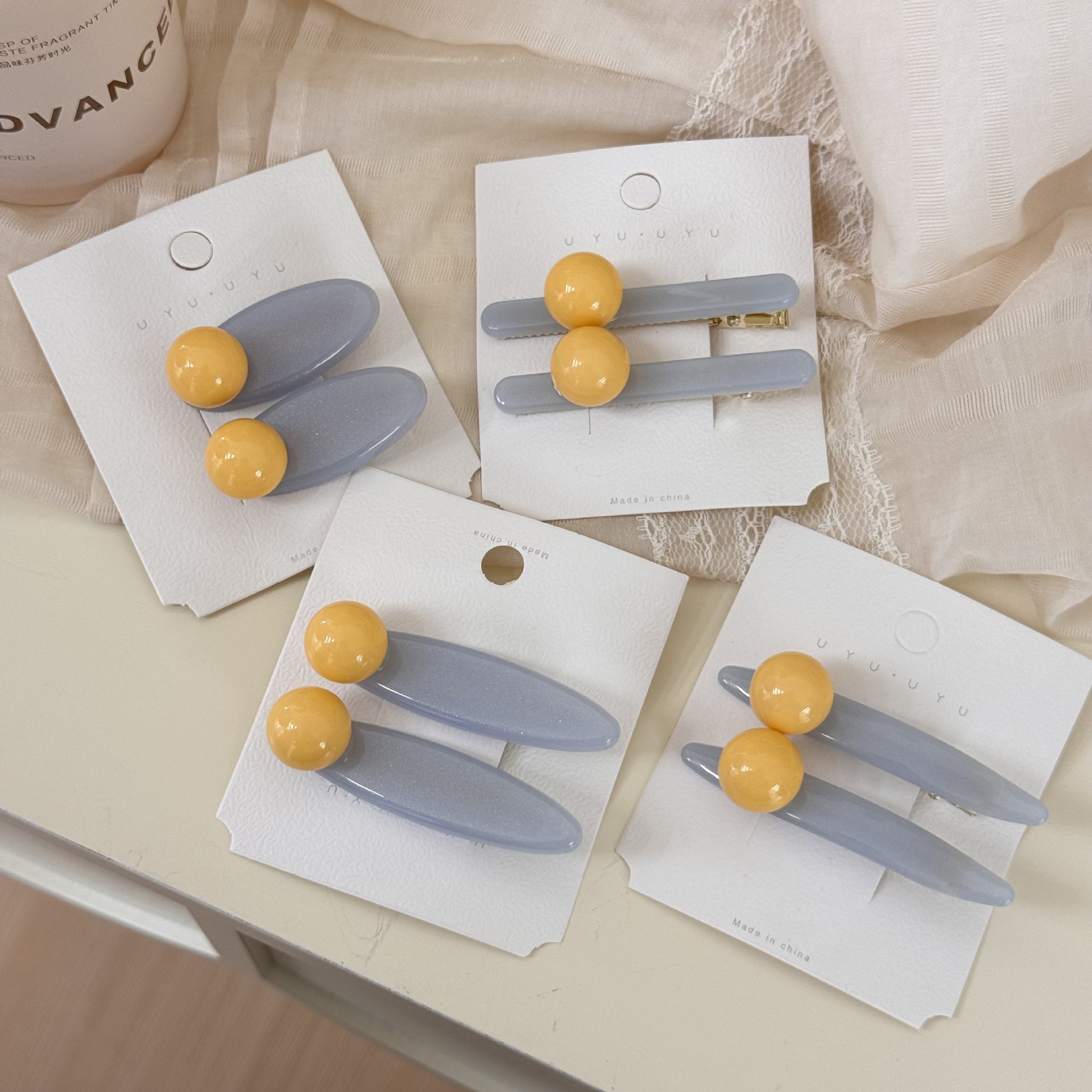 韩系新款浅蓝色撞色豆豆鸭嘴夹刘海夹碎发边夹氛围感发饰发卡夹子