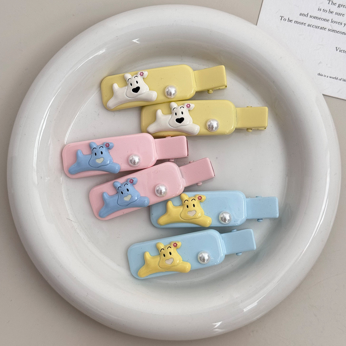 可爱珍珠搞怪小狗发夹鸭嘴夹侧边边夹糖果色趣味搞怪少女心发饰品
