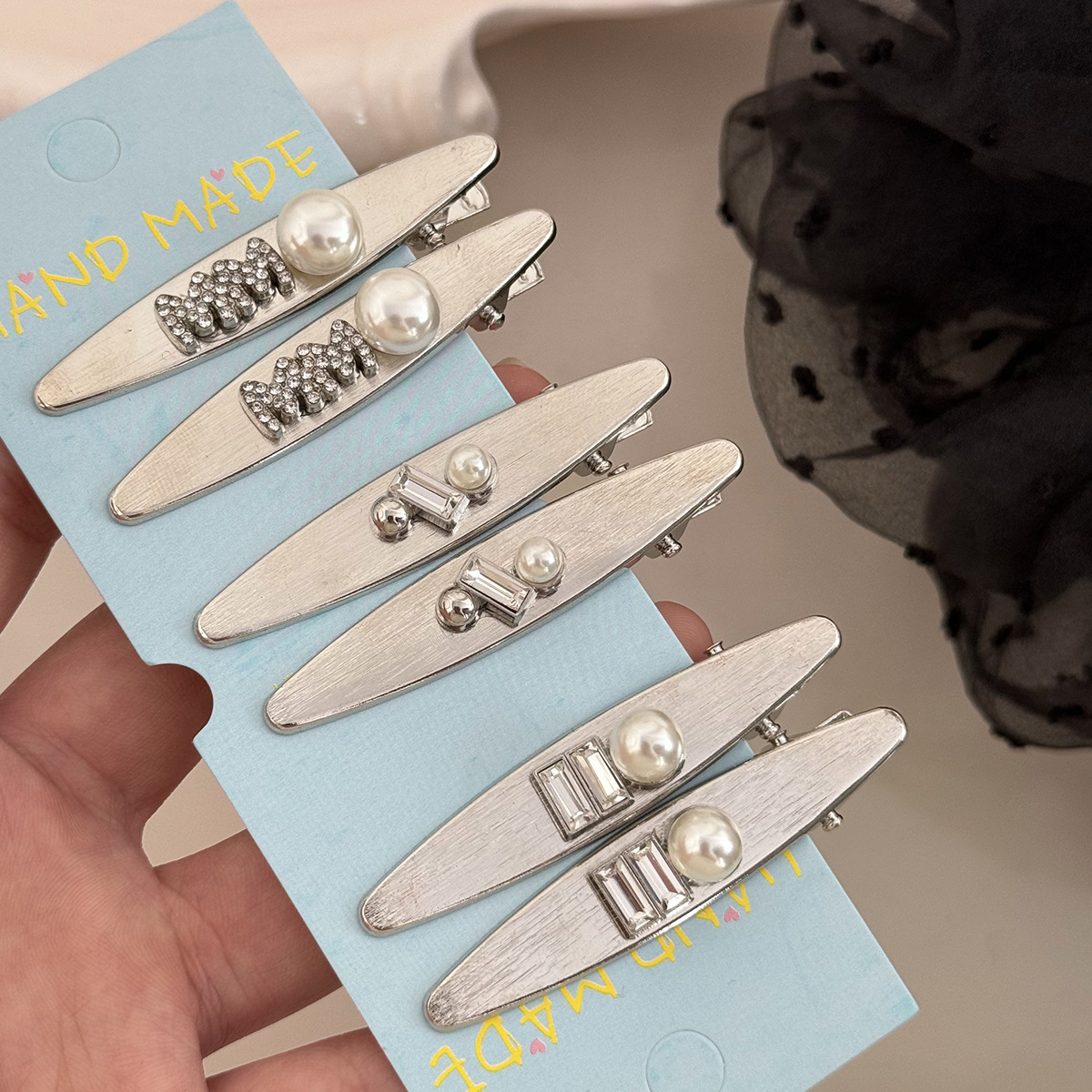 韩系金属冷淡风层次感水钻珍珠小号刘海夹2025年新款小众设计发夹