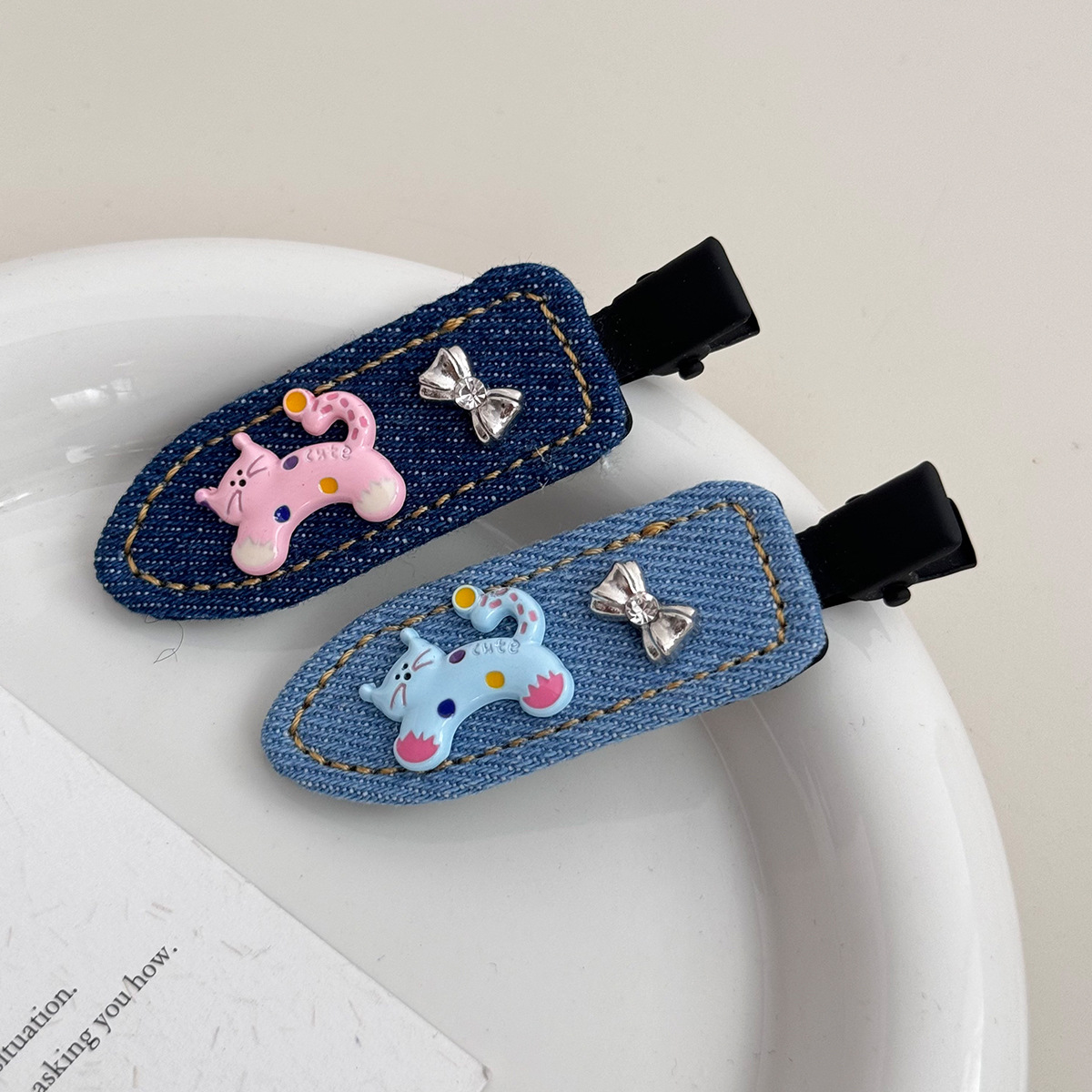 夏季牛仔呆萌小猫蝴蝶无痕刘海夹2025新款侧边刘海小众高级感发夹