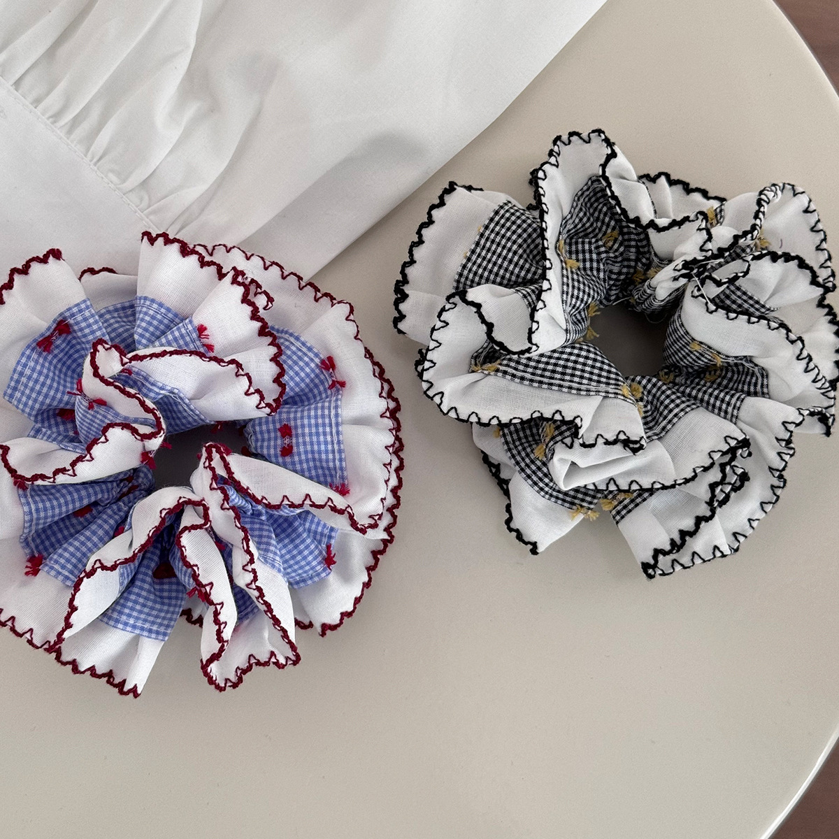 法式简约优雅头花发绳黑白波点四层褶皱大肠发圈高级气质包边头绳