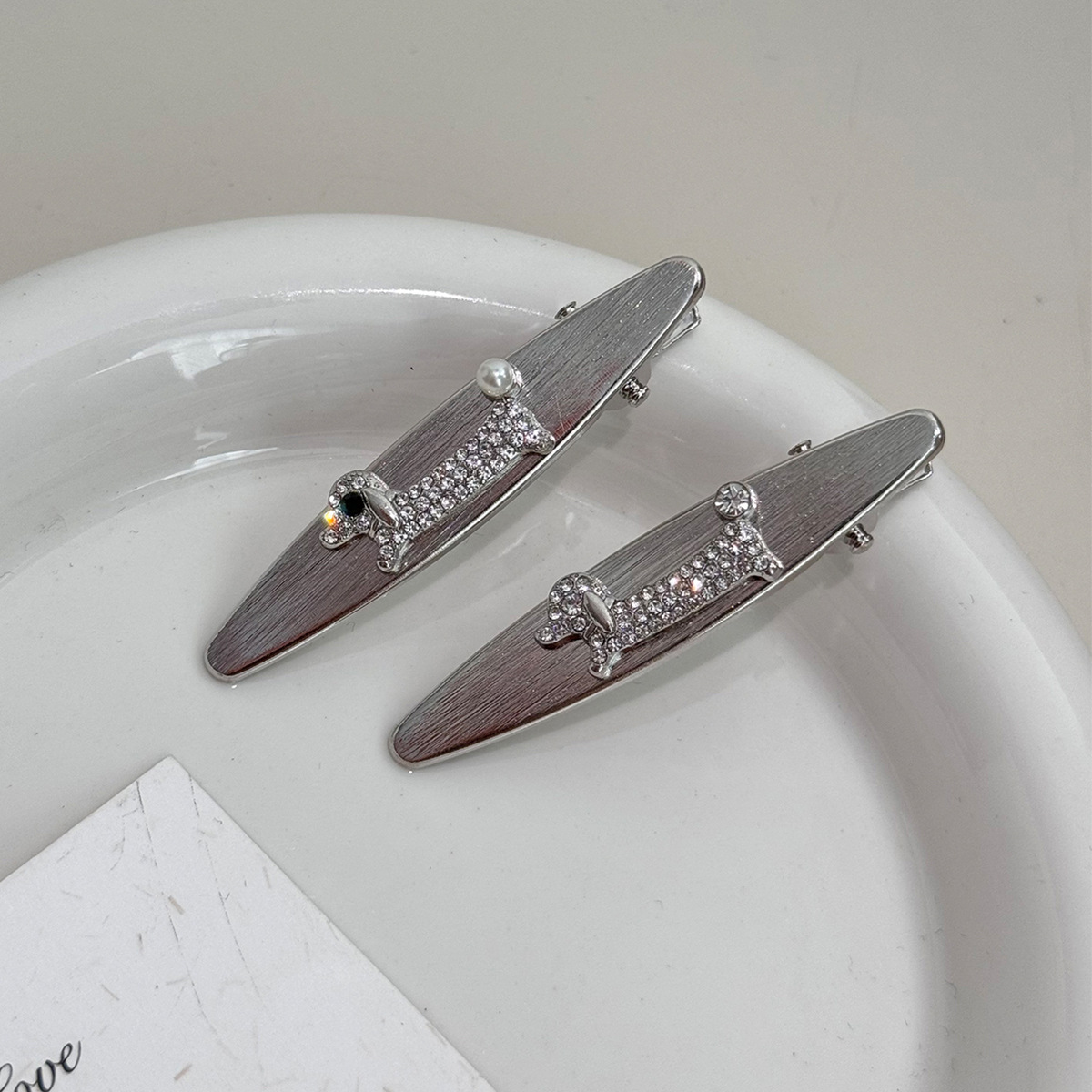 银色高级感小香风珍珠水钻腊肠小狗2025年新款侧边夹子前额碎发夹