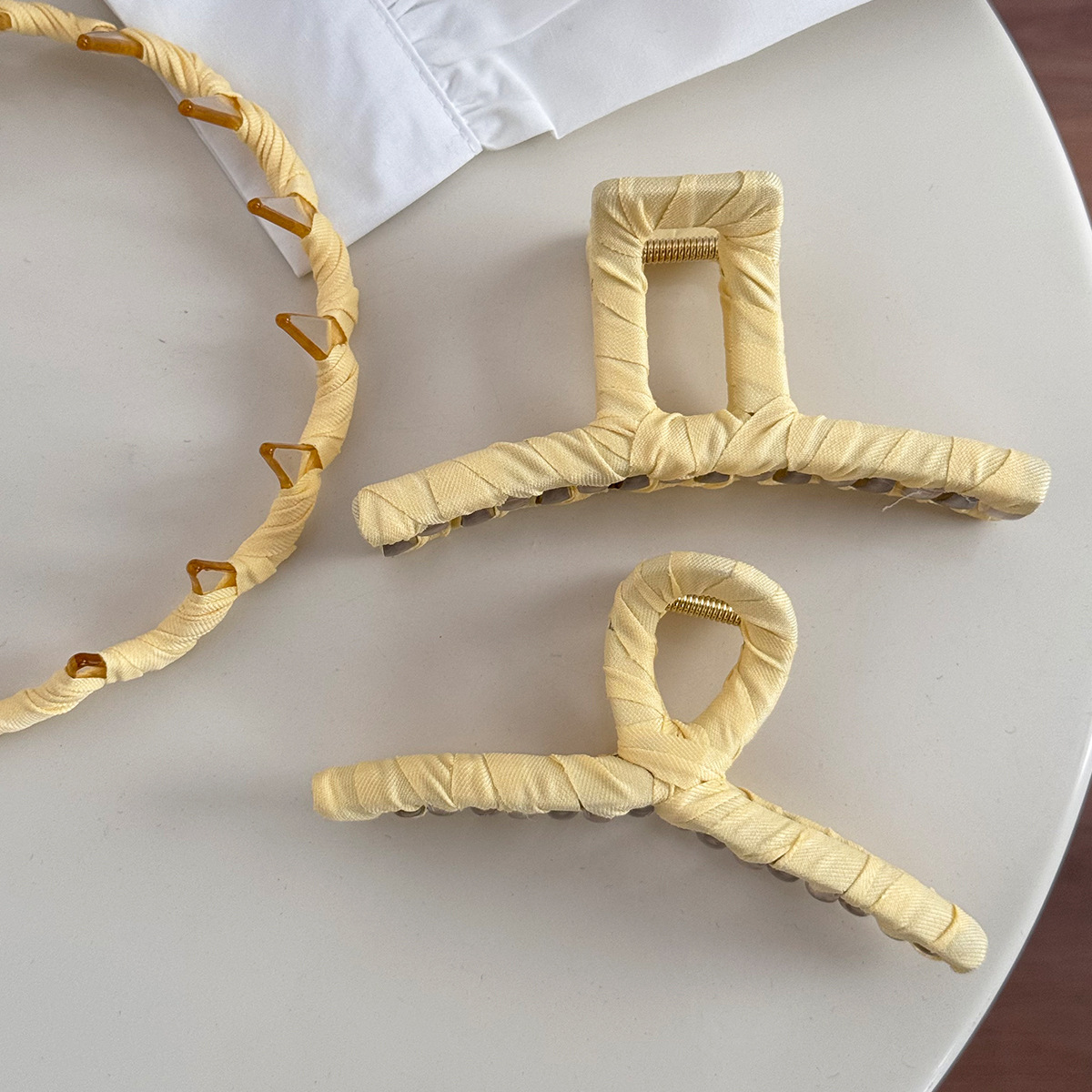韩国新款黄色元气少女感发箍布艺发夹时尚简约鲨鱼夹刘海夹发饰品