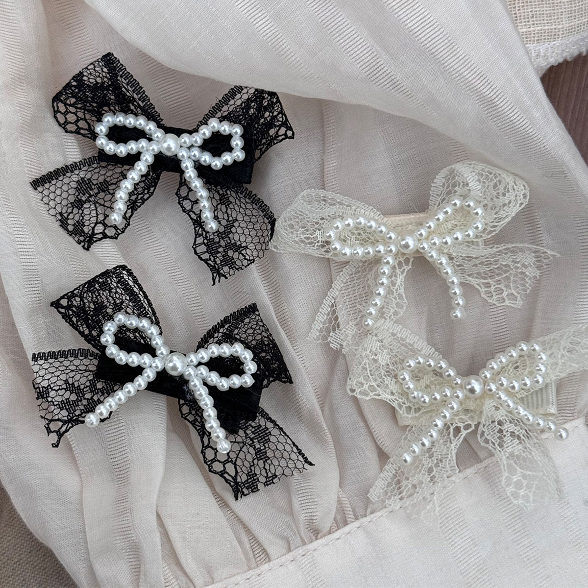 气质蕾丝蝴蝶结发夹女复古珍珠侧边刘海夹韩系2025新款高级感头饰