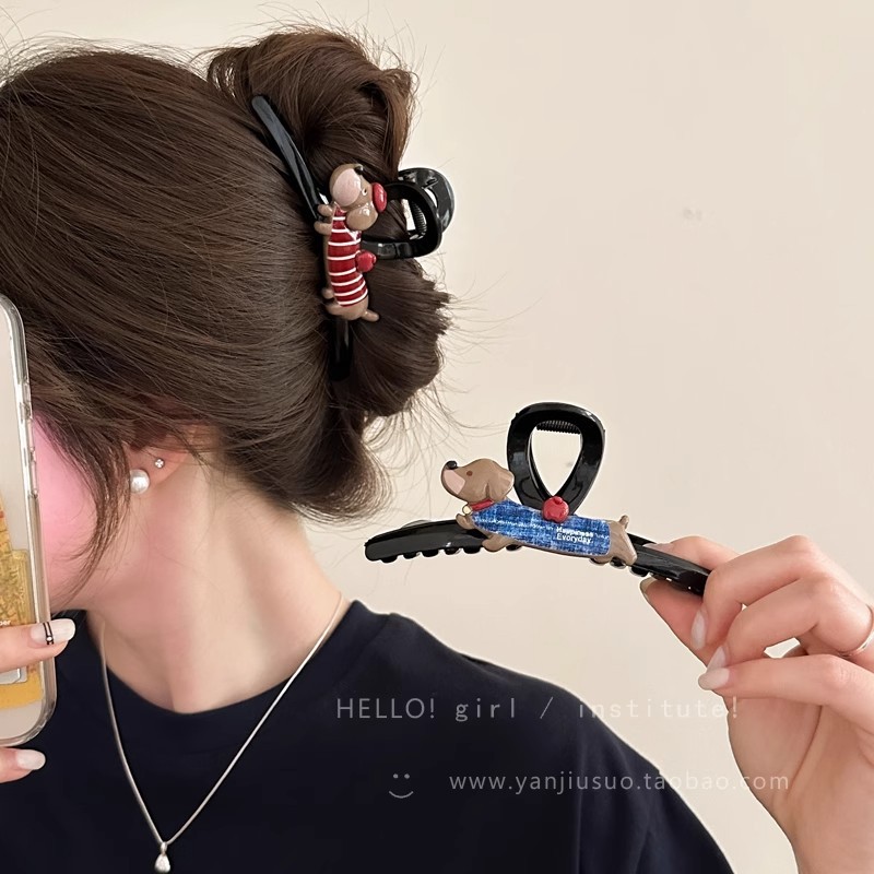 可爱卡通小狗抓夹女百搭发抓高级感盘发夹半扎发鲨鱼夹后脑勺头饰