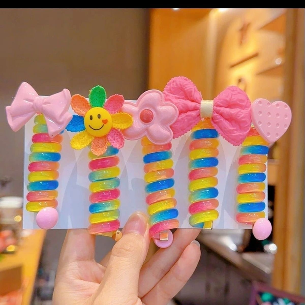 彩虹儿童卷卷电话线发圈可爱卡通七彩2025年新款3-6岁幼儿园发饰