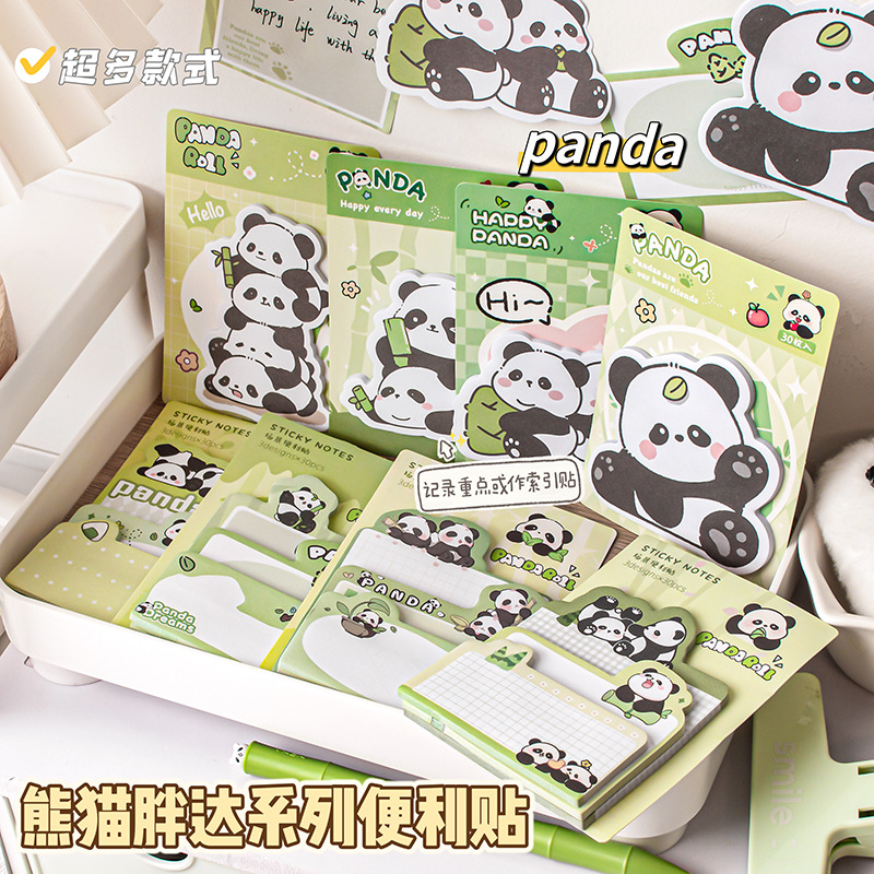 卡通异型熊猫便利贴可爱少女心留言记事便签纸高颜值可粘N次手账
