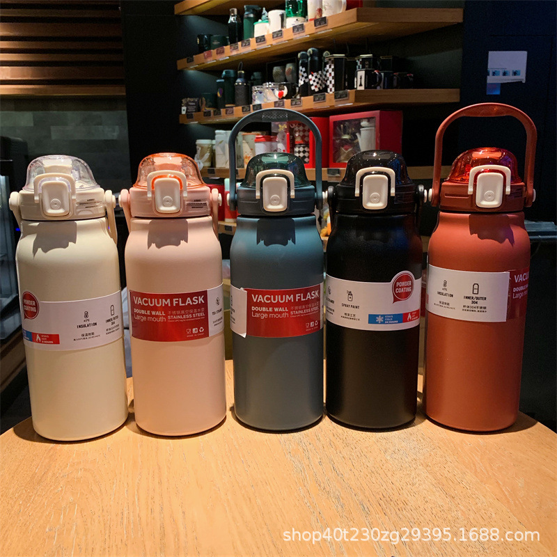 大容量保温杯304不锈钢户外运动水壶男女便携高颜值水杯子带吸管