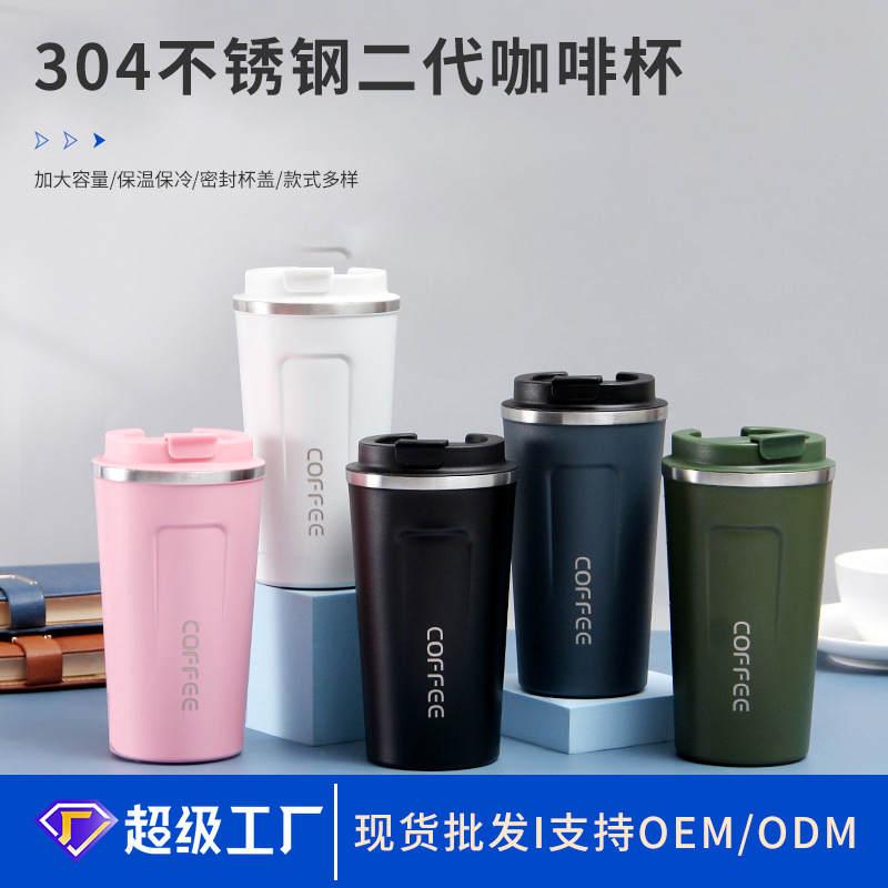 304不锈钢二代咖啡杯 办公便携泡茶水杯 商务送礼广告真空保温杯