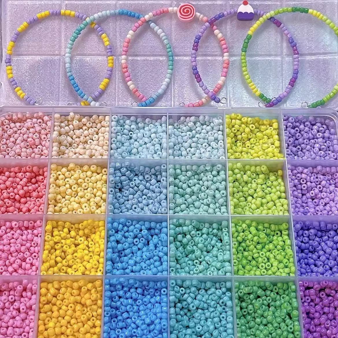 实色米珠套盒彩色玻璃米珠散珠材料包珠子diy手工项链手机链配件