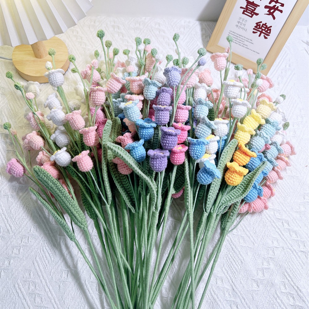 手工编织花束成品DIY铃兰花束永生花成品仿真花毛线花节日礼物