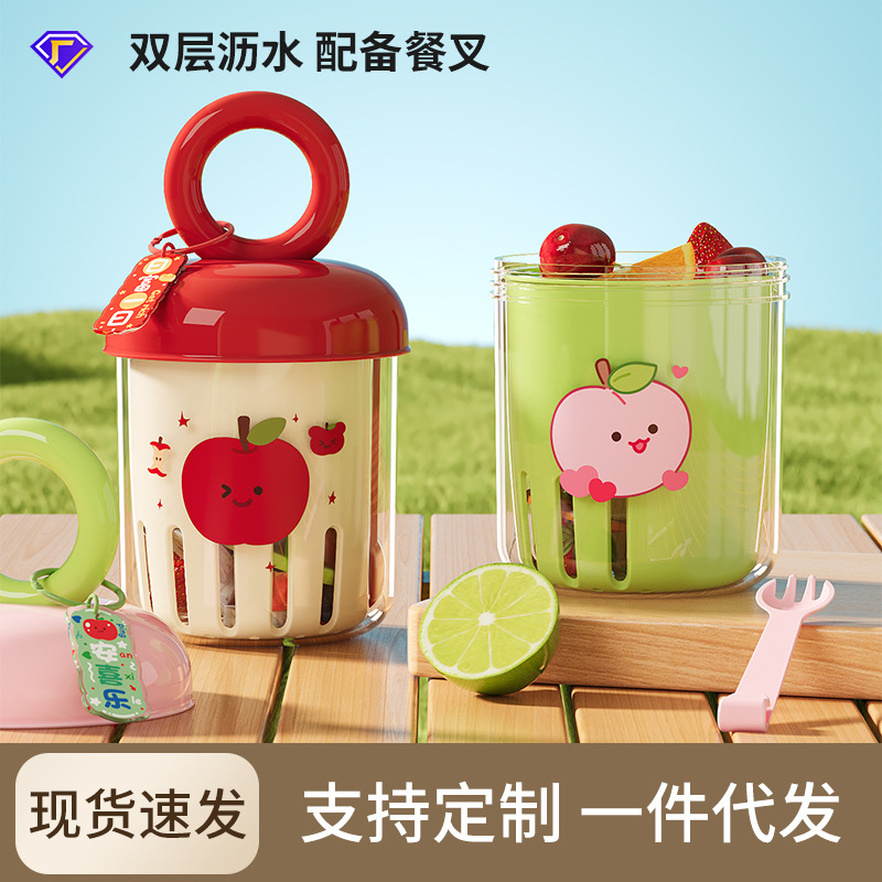 多巴胺水果杯户外便携式密封防漏带叉子酸奶沙拉杯野餐双层沥水杯