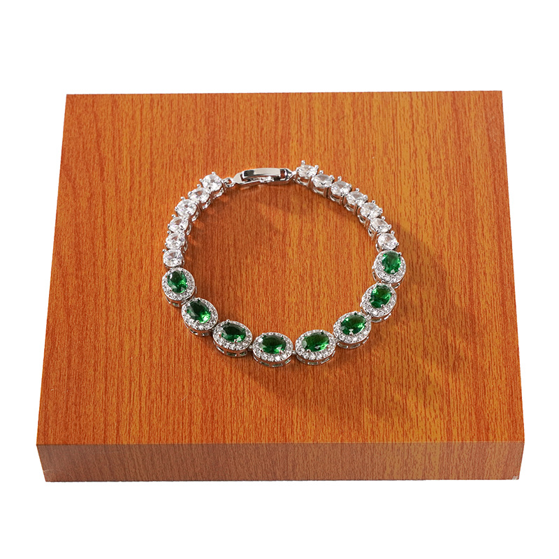跨境欧美镀金锆石手链百搭小众高级感水晶手串饰品祖母绿手饰批发