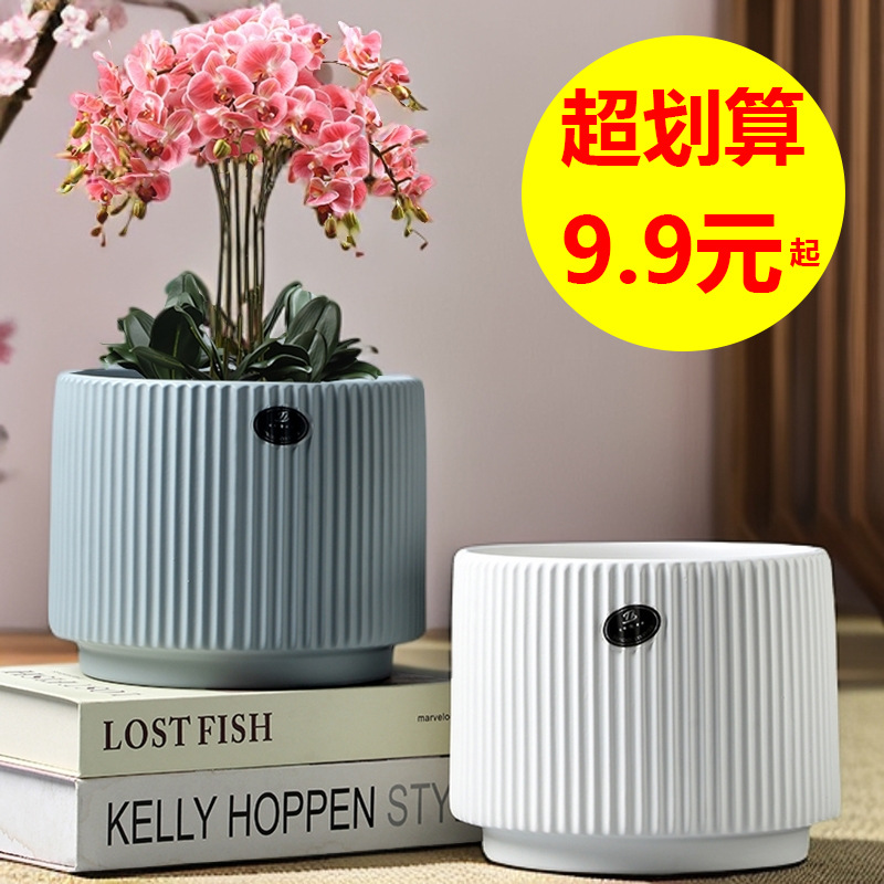 陶瓷花盆简约ins轻奢清仓大号特大号带托盘家用吊兰绿植肉肉盆栽