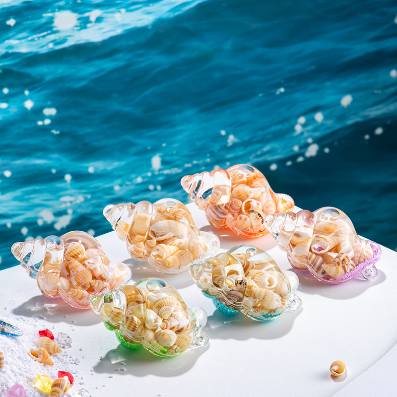 创意新款小海螺液体入油流沙瓶摆件亚克力钥匙链配件包包挂饰批发