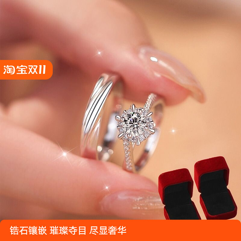 仿真假钻戒一对情侣结婚对戒活口可调节戒指求婚纱照礼仪式用道具