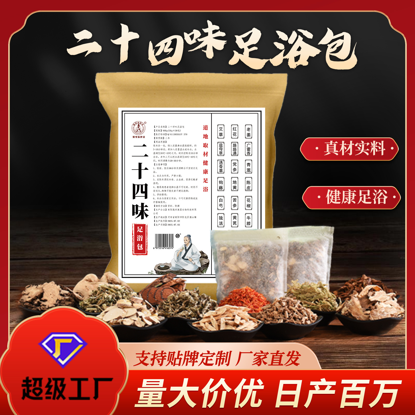 二十四味泡脚包24味艾草家用去湿气足浴包免煮式暴汗泡脚药包批发