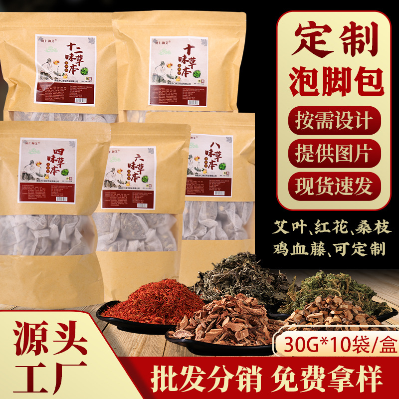 工厂现货艾草泡脚包多味足部护理泡脚药包牛皮包装草本足浴包批发