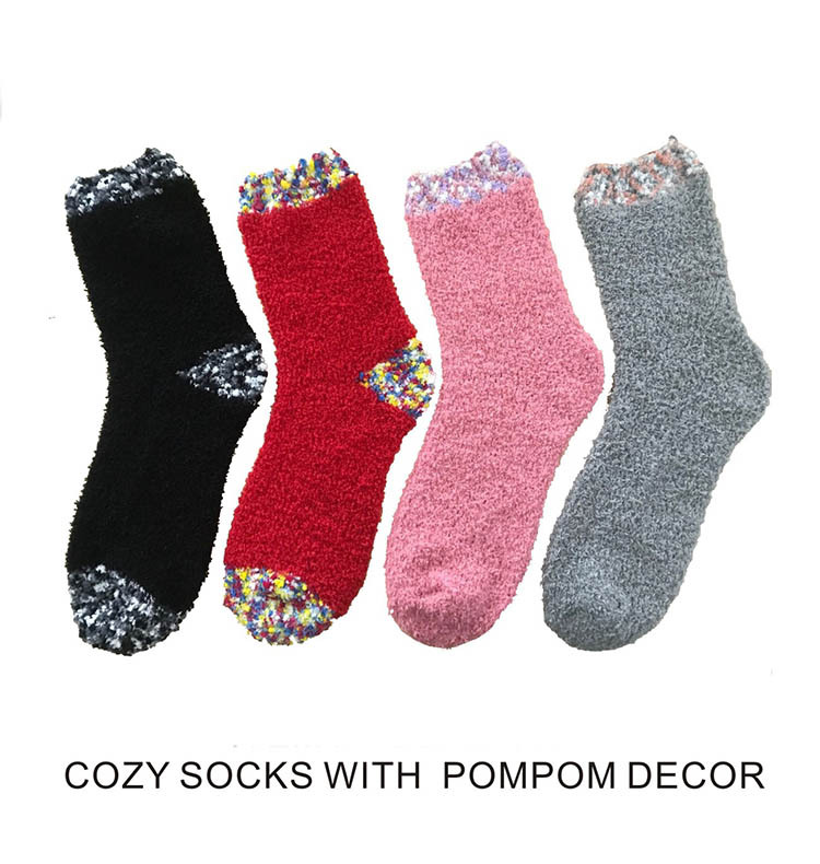 袜子女秋冬睡眠袜中筒保暖袜珊瑚绒带小球POPCORN地板袜批发订做