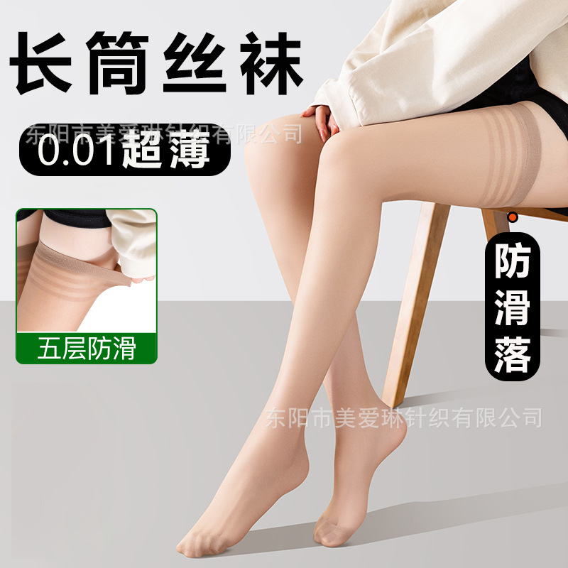 批发防滑长筒丝袜女春夏超薄款防勾丝过膝高筒光腿肉色长款大腿袜