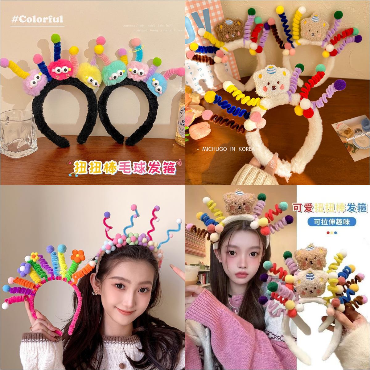 搞怪扭扭发箍毛绒卡通可爱儿童头饰女高颅顶头饰发饰压发头箍时尚