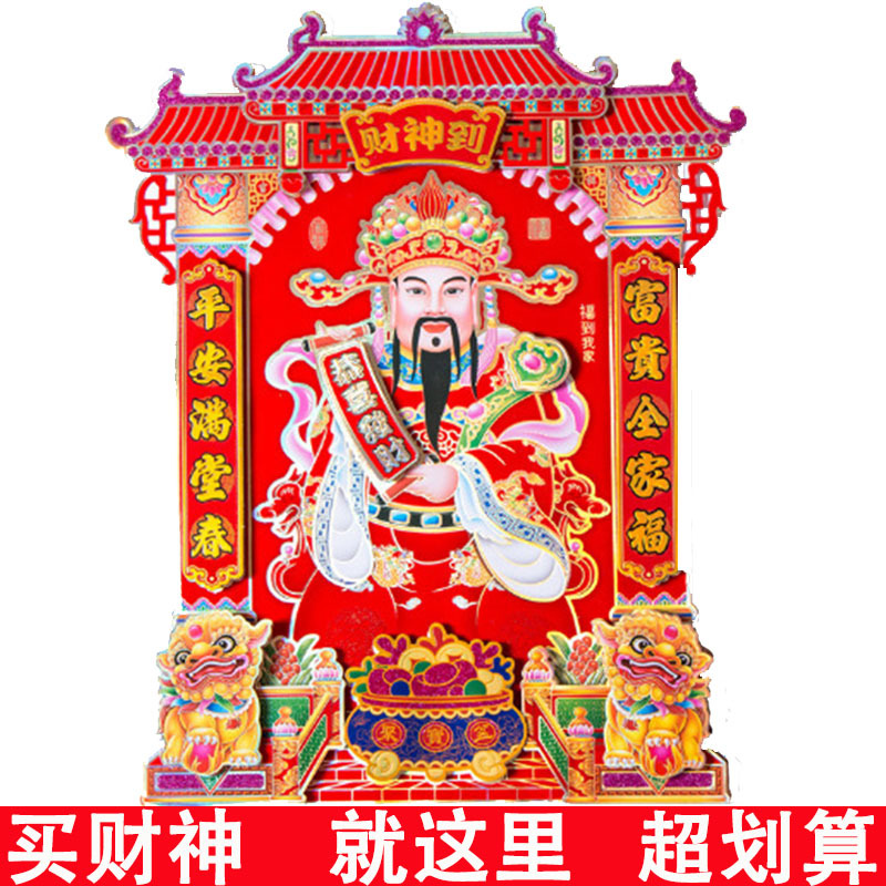 新款植绒财神画立体双层烫金财神爷贴纸春节装饰用品年画厂家批发