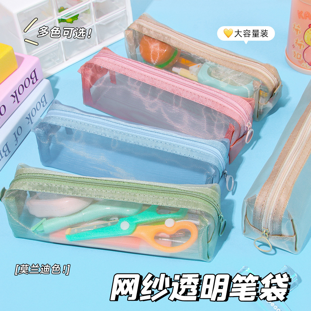 尼龙网纱透明笔袋小学生考试专用单层文具盒大容量耐脏铅笔袋批发