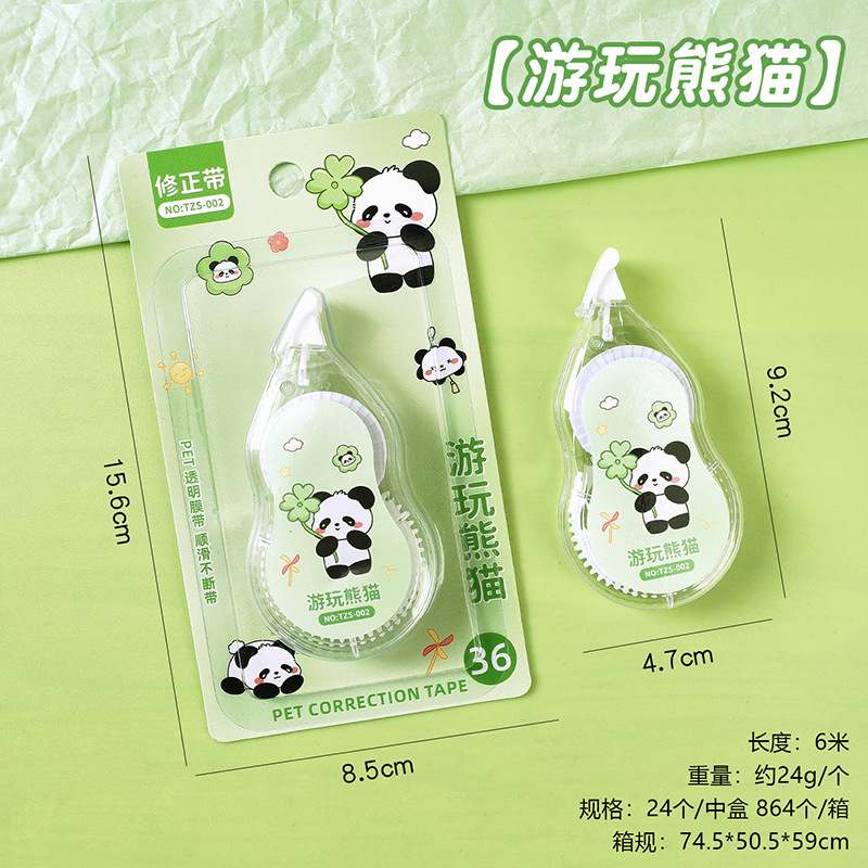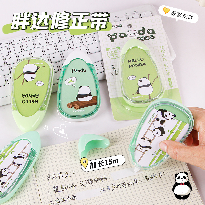 新款卡通熊猫修正带小学生专用大容量改正带6m高颜值改错带批发