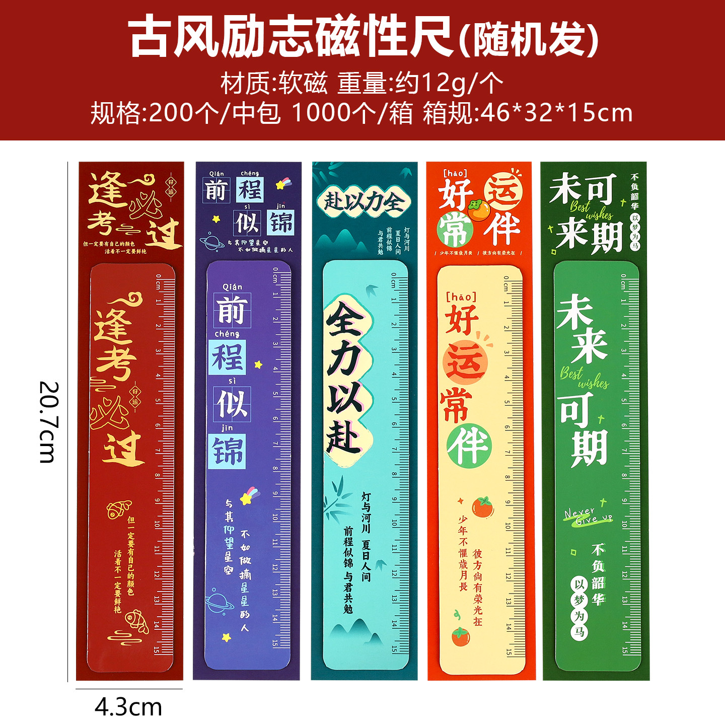 卡通励志文字磁性直尺创意小学生测量工具高颜值15cm尺子软尺批发