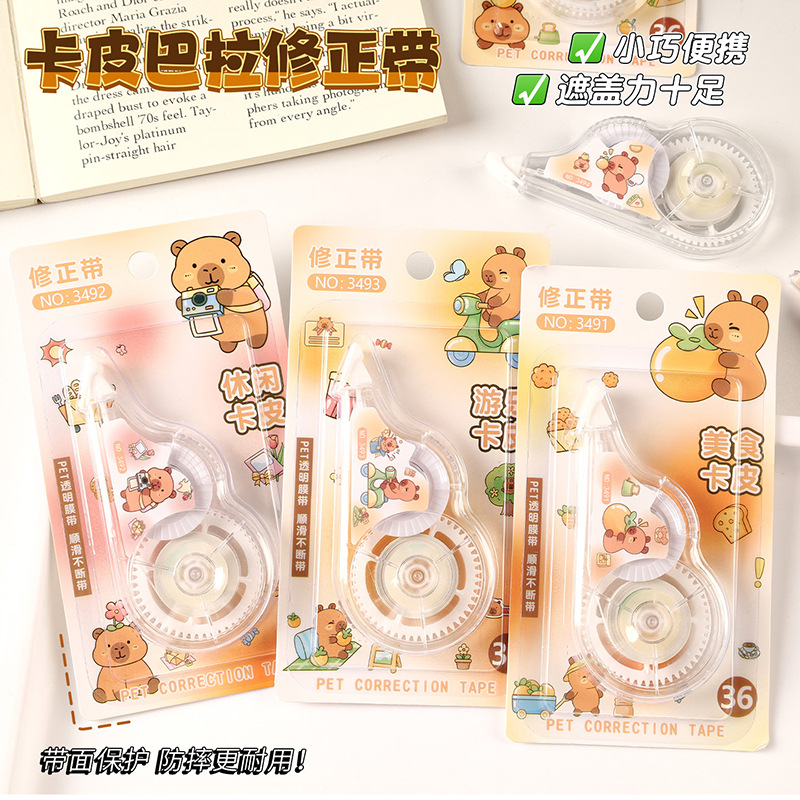 创意卡通卡皮巴拉修正带小学生可爱大容量6米PET透明膜改正带批发