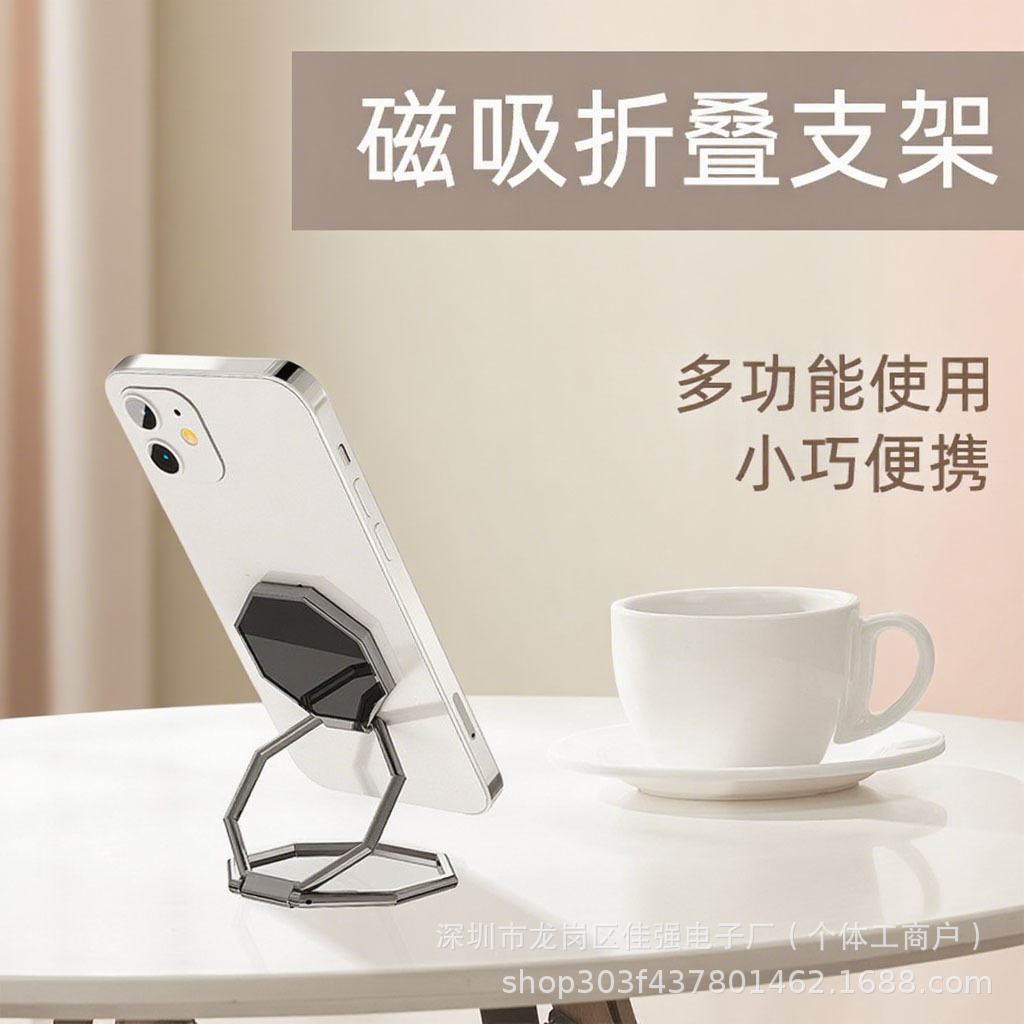 手机折叠多凌形八卦环金属指环扣可磁吸车载直播平板支架直播神器