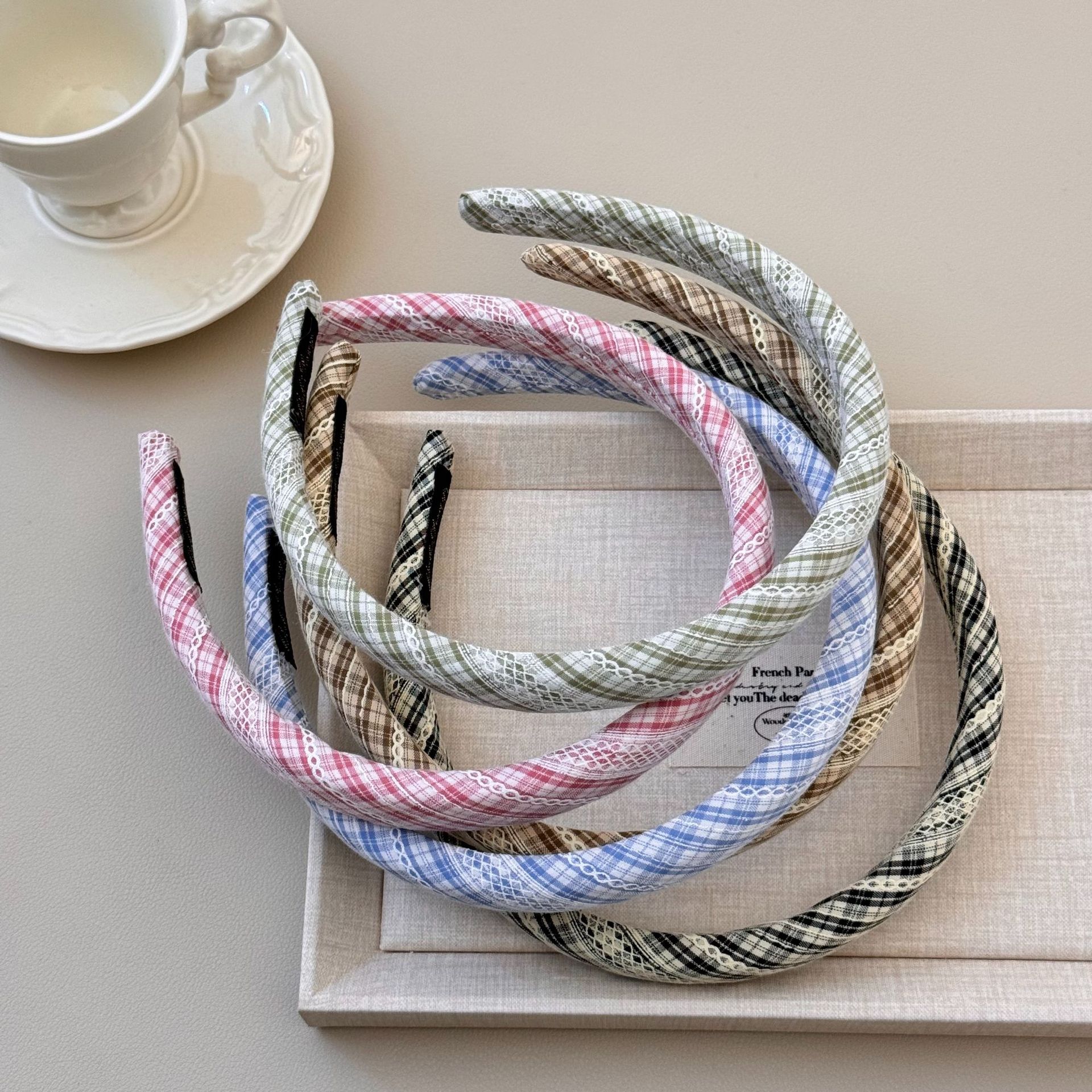 韩版小清新格纹布艺海绵发箍细款高颅顶头箍早春新款百搭外出头箍