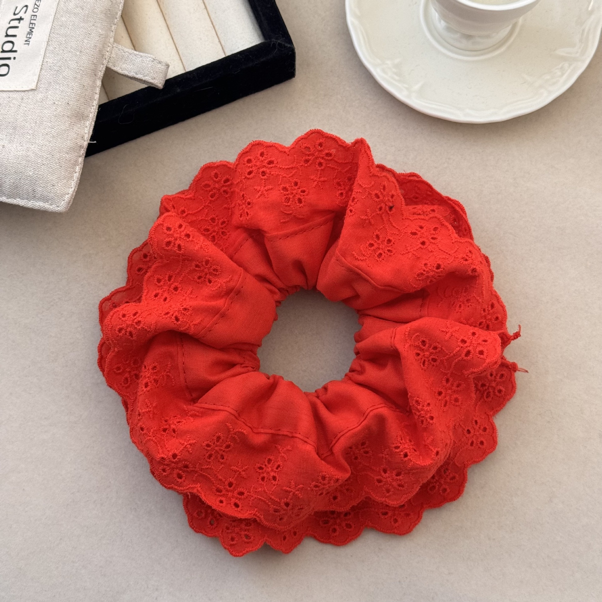 杨超越同款红色花边蕾丝大发圈法式复古温柔发饰少女镂空大号发绳