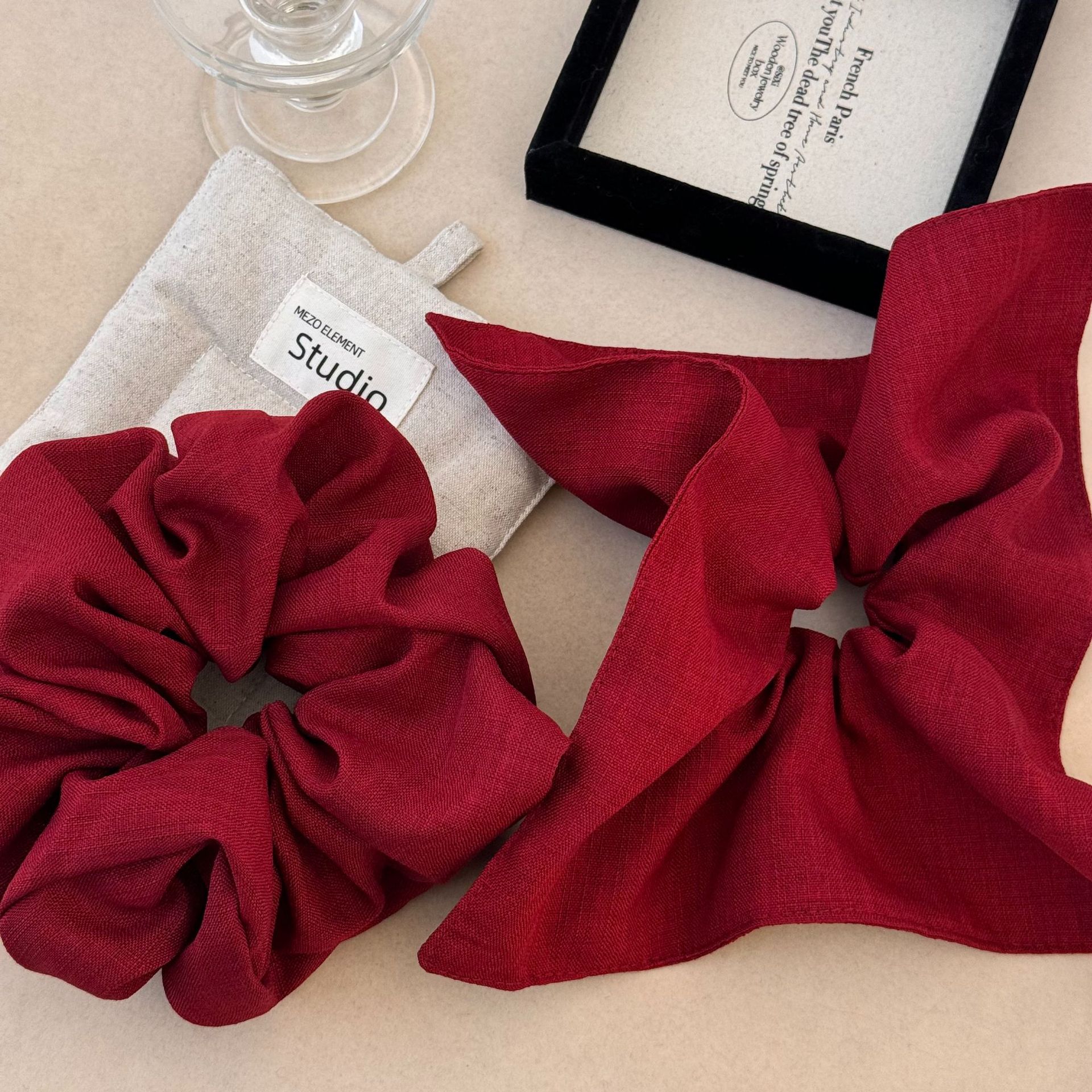 圣诞复古红色头绳发饰女气质扎低马尾发绳法式优雅绑头发大肠发圈