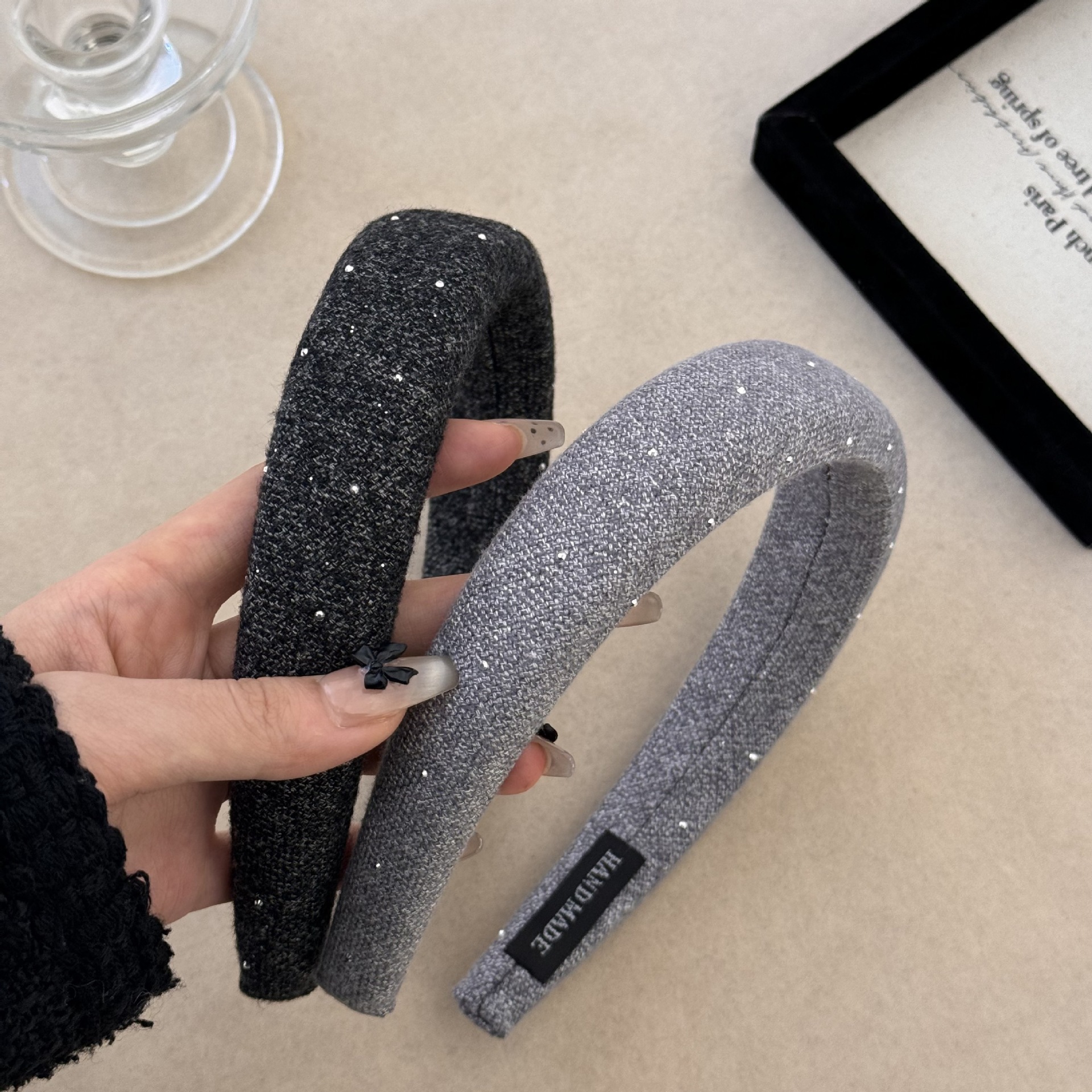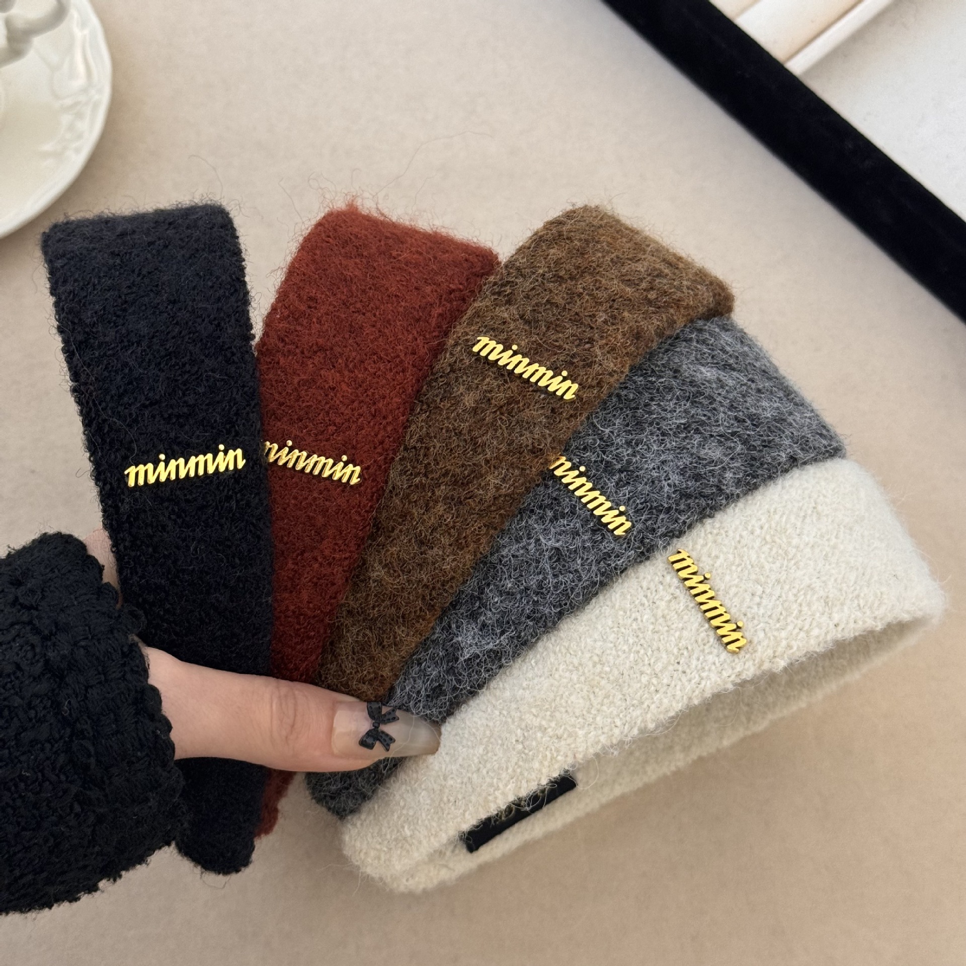 羊毛椭圆金标毛呢宽版发箍秋冬高颅顶碎发发卡外出高级感百搭头箍