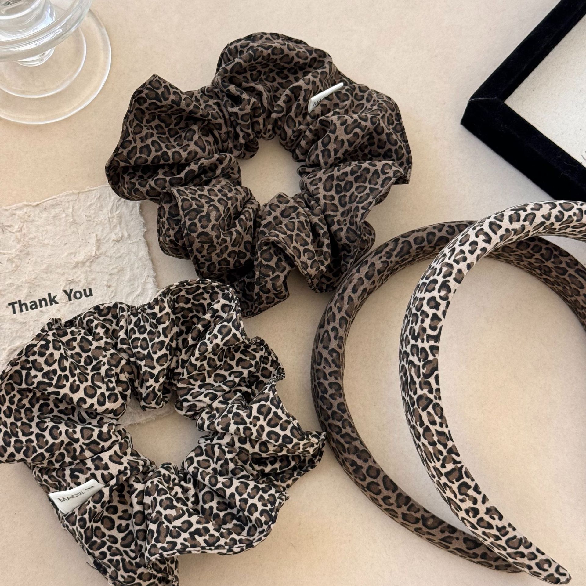 韩版时髦复古豹纹大肠发圈布艺发绳高级感温柔个性海绵高颅顶发箍