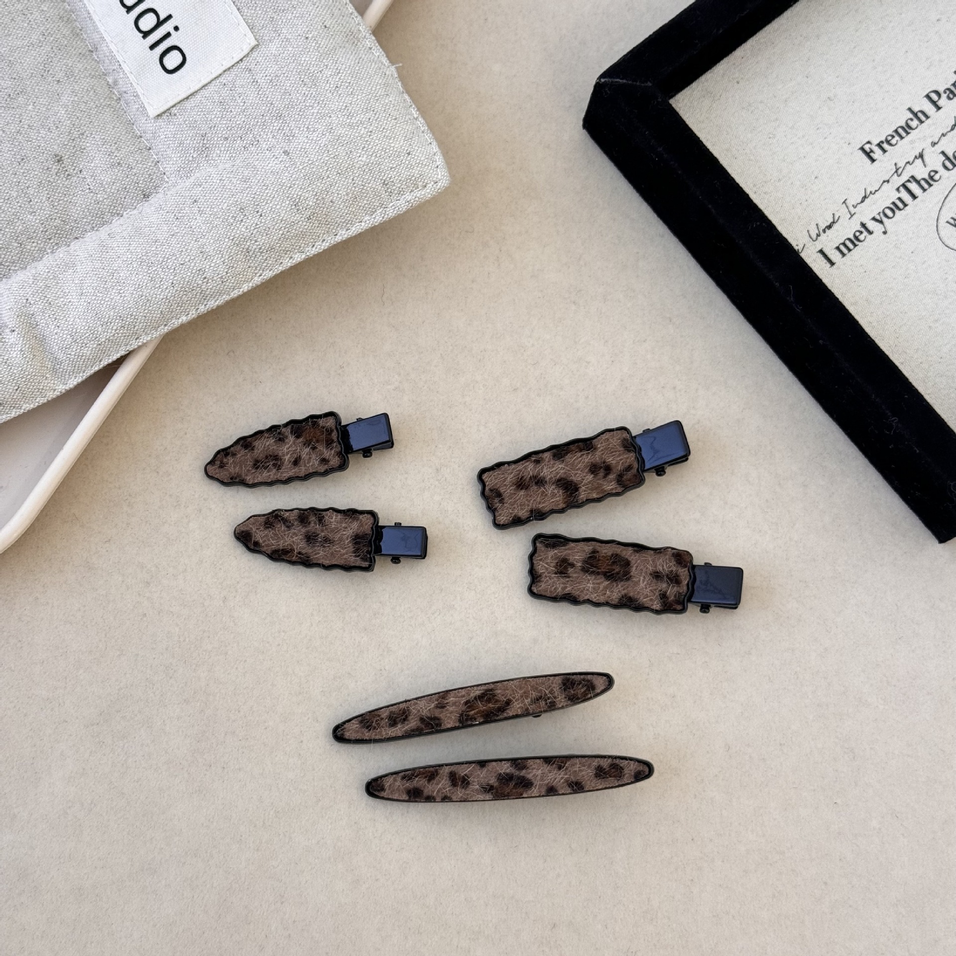 韩系温柔复古 百搭植绒豹纹不规则发夹丝绒刘海侧边少女鸭嘴夹发