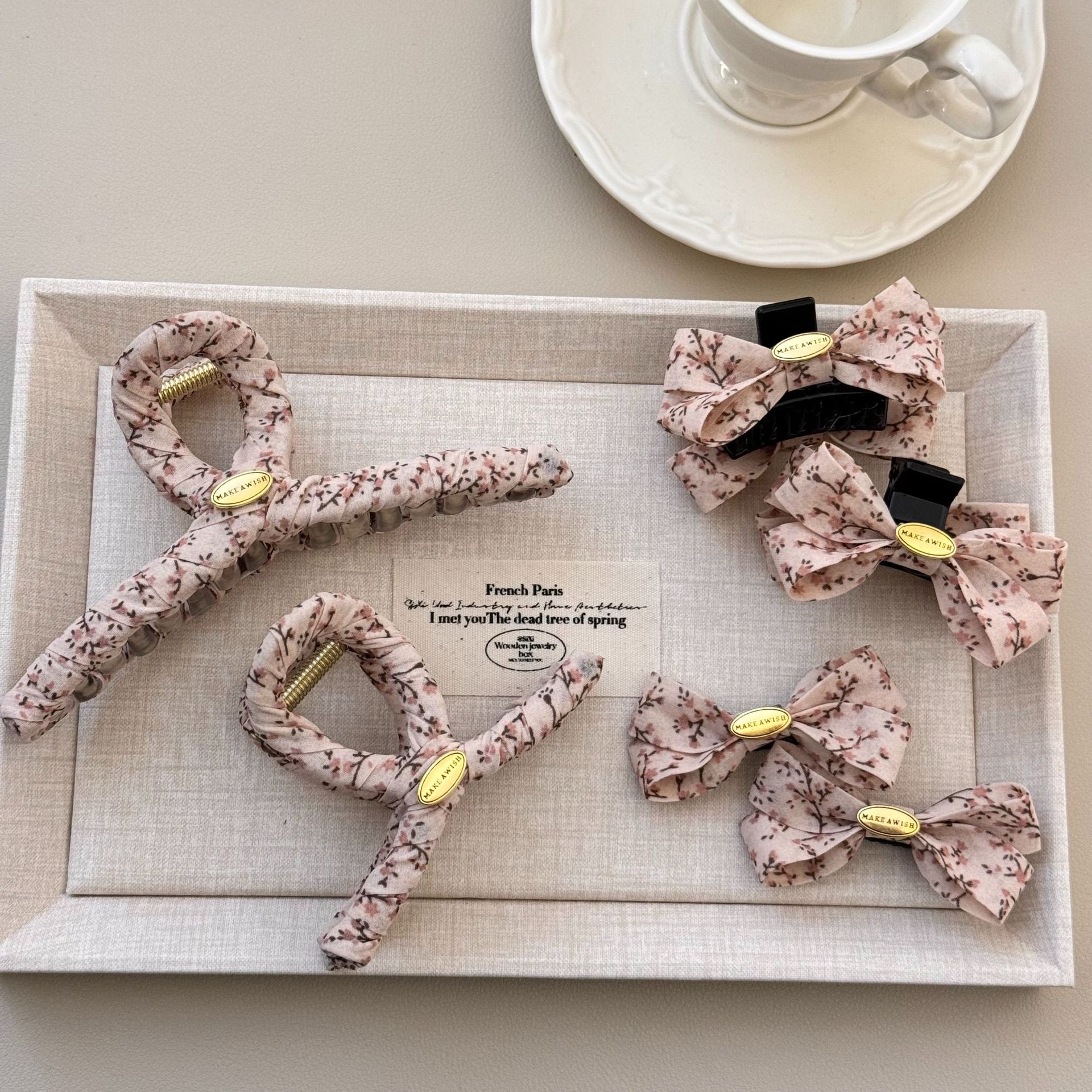奶油色碎花简约发夹女可爱发饰发夹韩国韩系碎花布艺缠绕大号抓夹