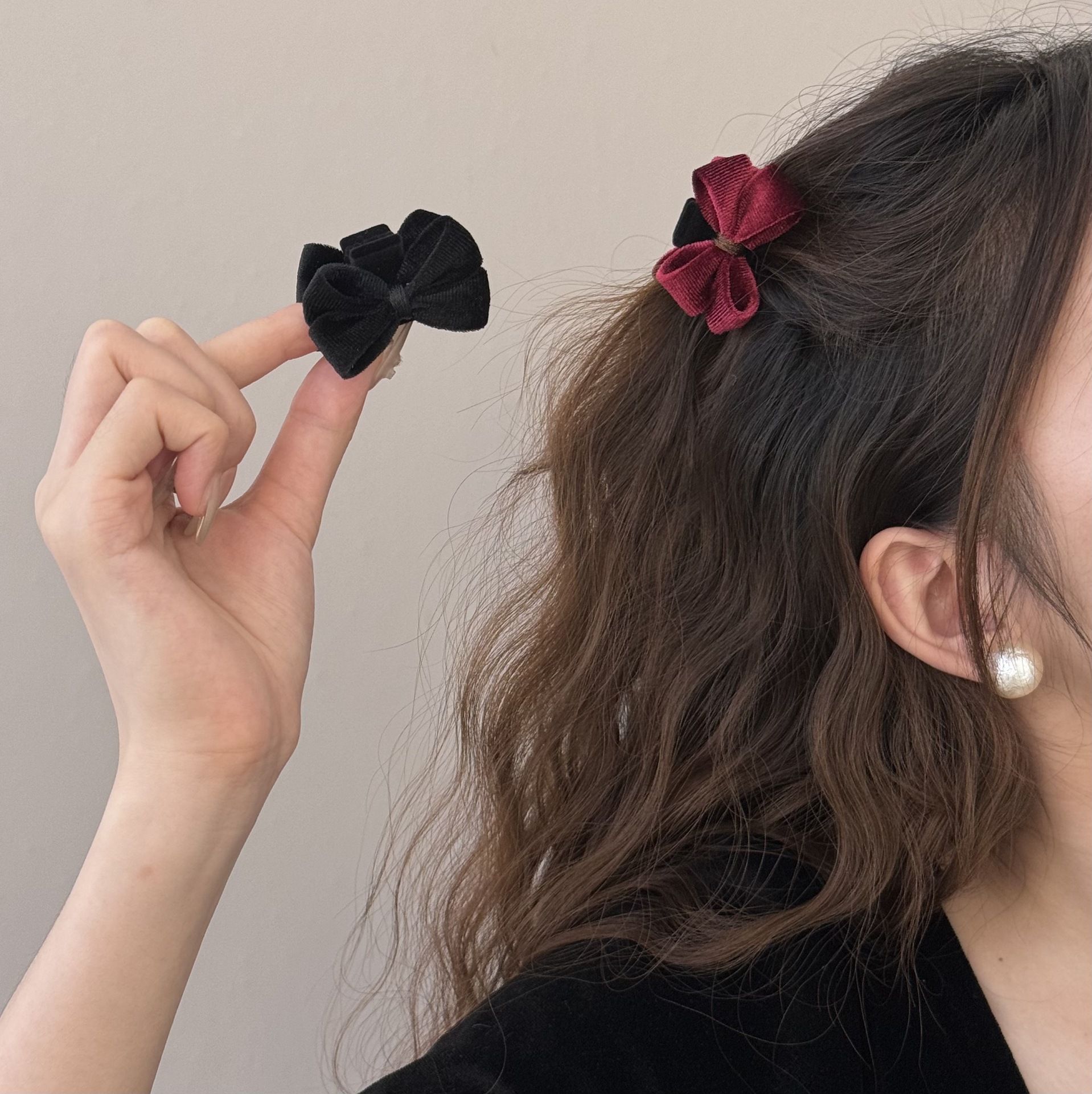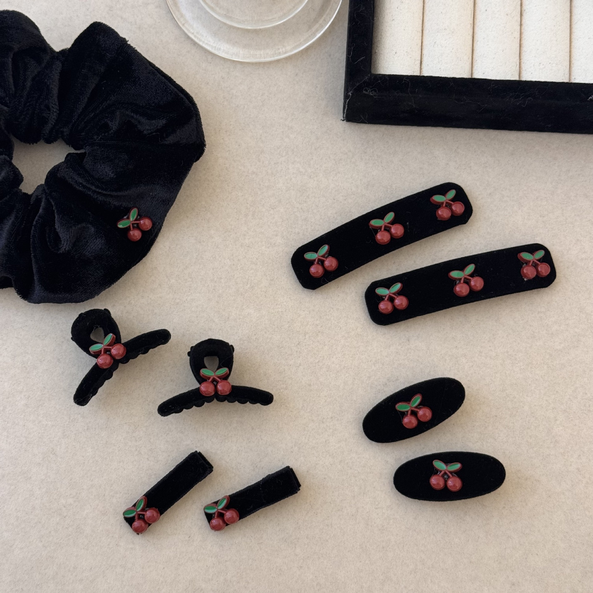 新年可爱红樱桃复古黑色丝绒小抓夹BB夹甜美可爱刘海夹发饰头饰品