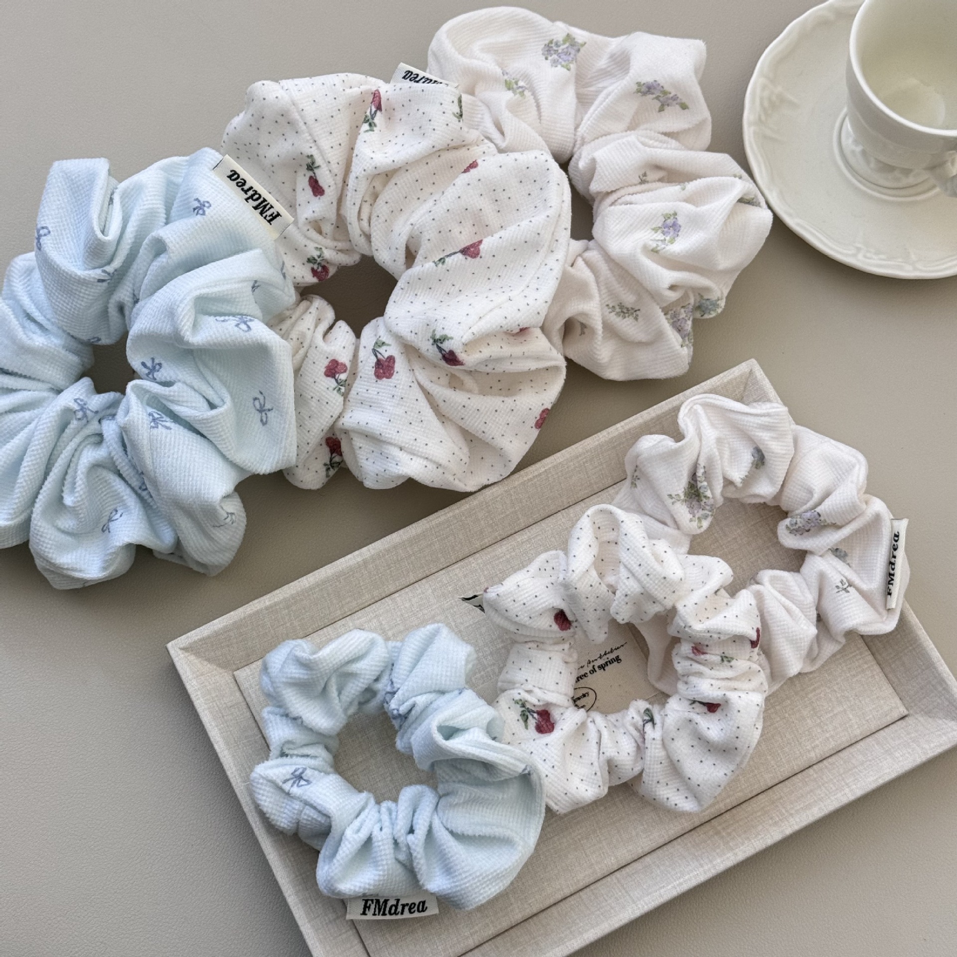 大号碎花纯色高级感大肠发圈波点玫瑰灯芯绒百搭新款少女头花发饰