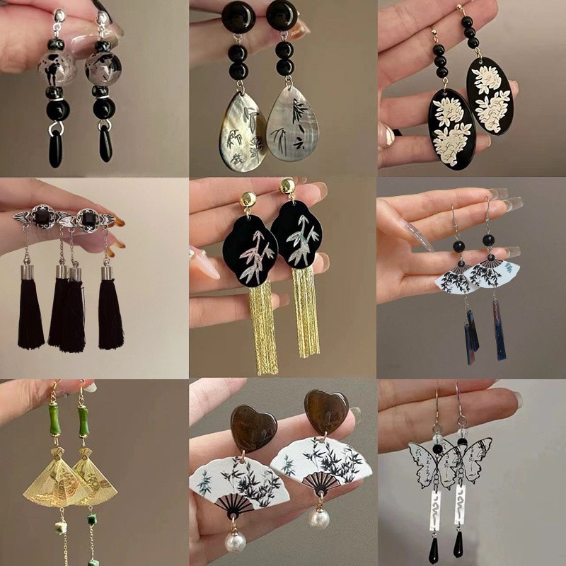 银针新中式竹节扇形耳钉国潮时尚水滴蝴蝶耳坠复古百搭耳环耳饰女