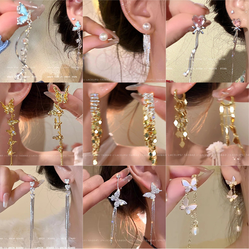 925银针高级感爪锆流苏耳环女轻奢小众气质长款耳钉圆脸显瘦耳饰