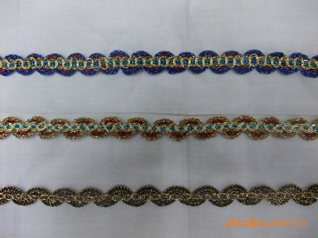 供应1.8CM金丝彩色圆圈花边 圆圈花边平阳打圈花边现货供应