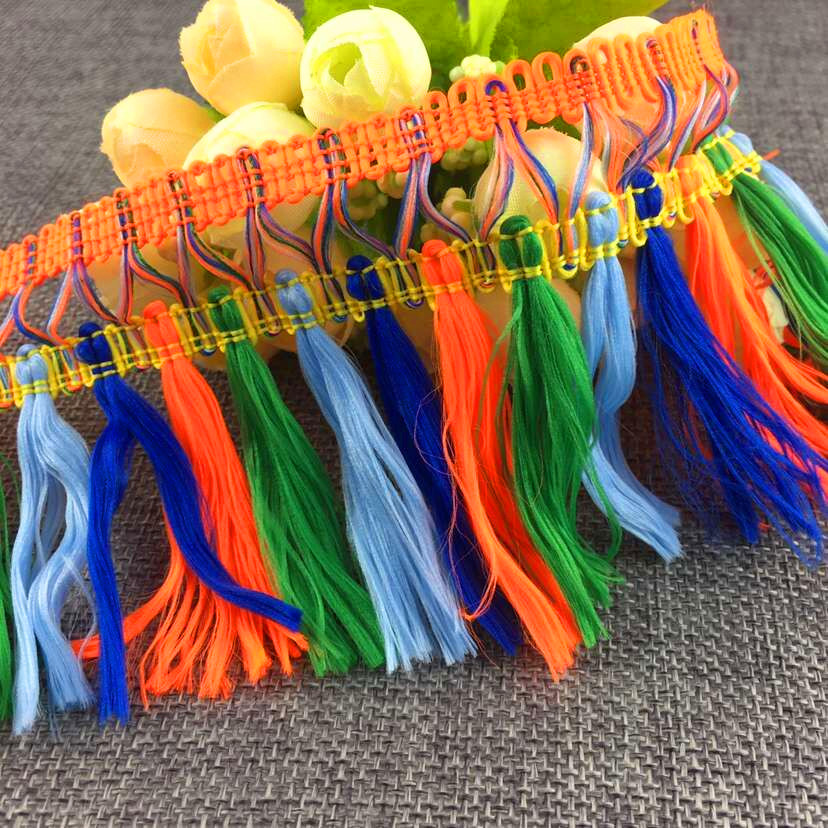 现货供应4.5CM涤纶扫把流苏花边 全涤环保染色扫把花边流苏花边