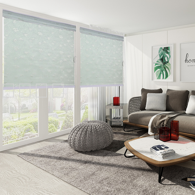 柔纱帘窗帘现代简约欧式提花窗帘双层遮光卷帘客厅卧室浴室帘尺寸