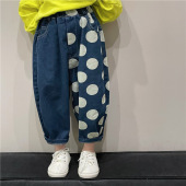 童装儿童裤子2023春装新款韩版波点牛仔裤洋气宝宝拼色休闲裤K315