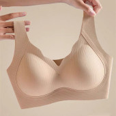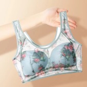 夏季薄款冰丝美背聚拢无痕文胸一片式收副乳背心式透气睡眠文胸女