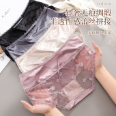 轻奢无痕绸缎蕾丝拼接提花三角裤舒适透气轻柔中腰裆女式提臀内裤